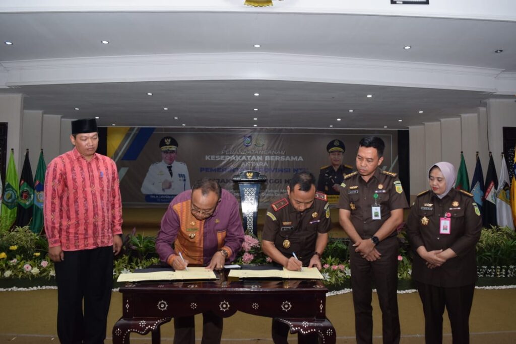 Pemerintah Provinsi NTB bersama Kejaksaan Tinggi Prov. NTB, melakukan Penandatanganan Kesepakatan Bersama mengenai sinergitas pelaksanaan tugas dan fungsi melalui program JAGA DESA (Jaksa Garda Desa), berlangsung di Gedung Graha Bhakti Praja Kantor Gubernur NTB. Selasa (24/10/2023).